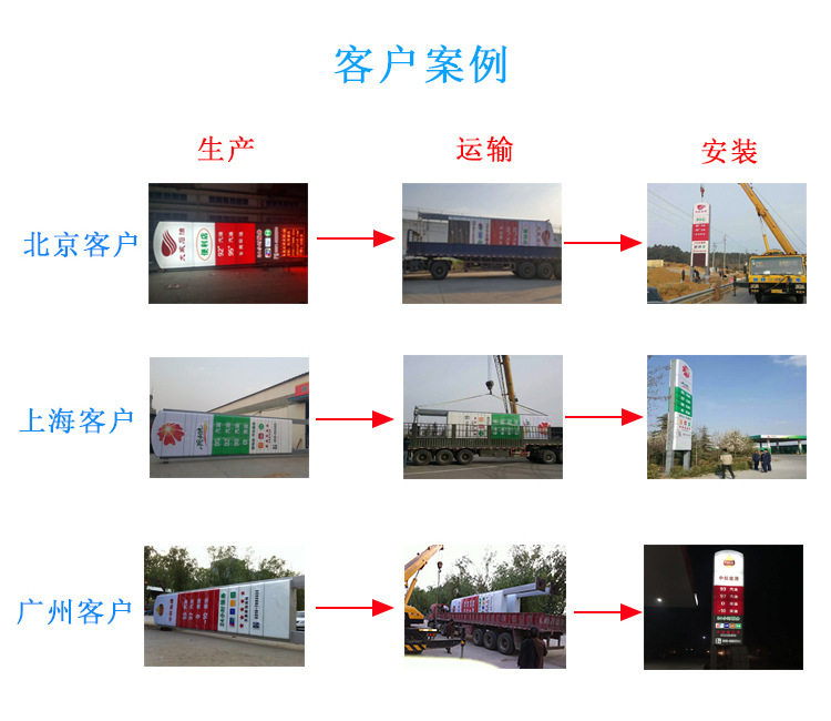 公司主要制作:中国石油石化立柱、中国海油航油立柱、LNG加气站立柱、延长壳牌立柱、社会型民营站立柱及加油站加气站配套亮化标识。